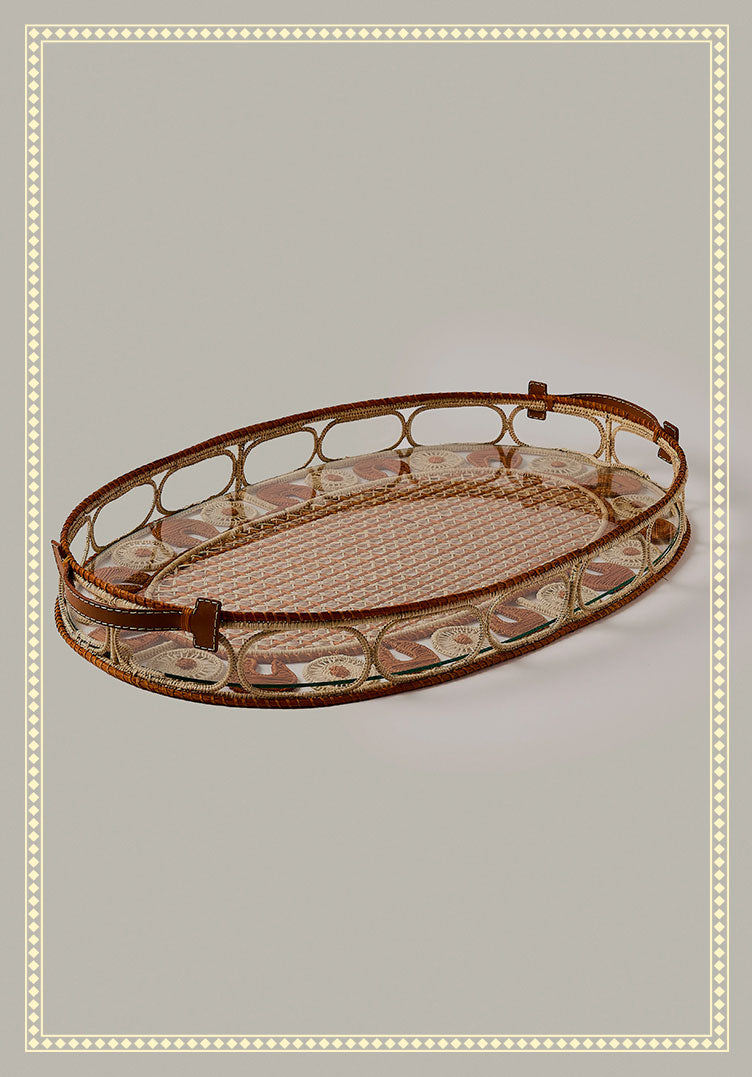 IRACA PALM LEATHER TRAY LARGE PAILLE